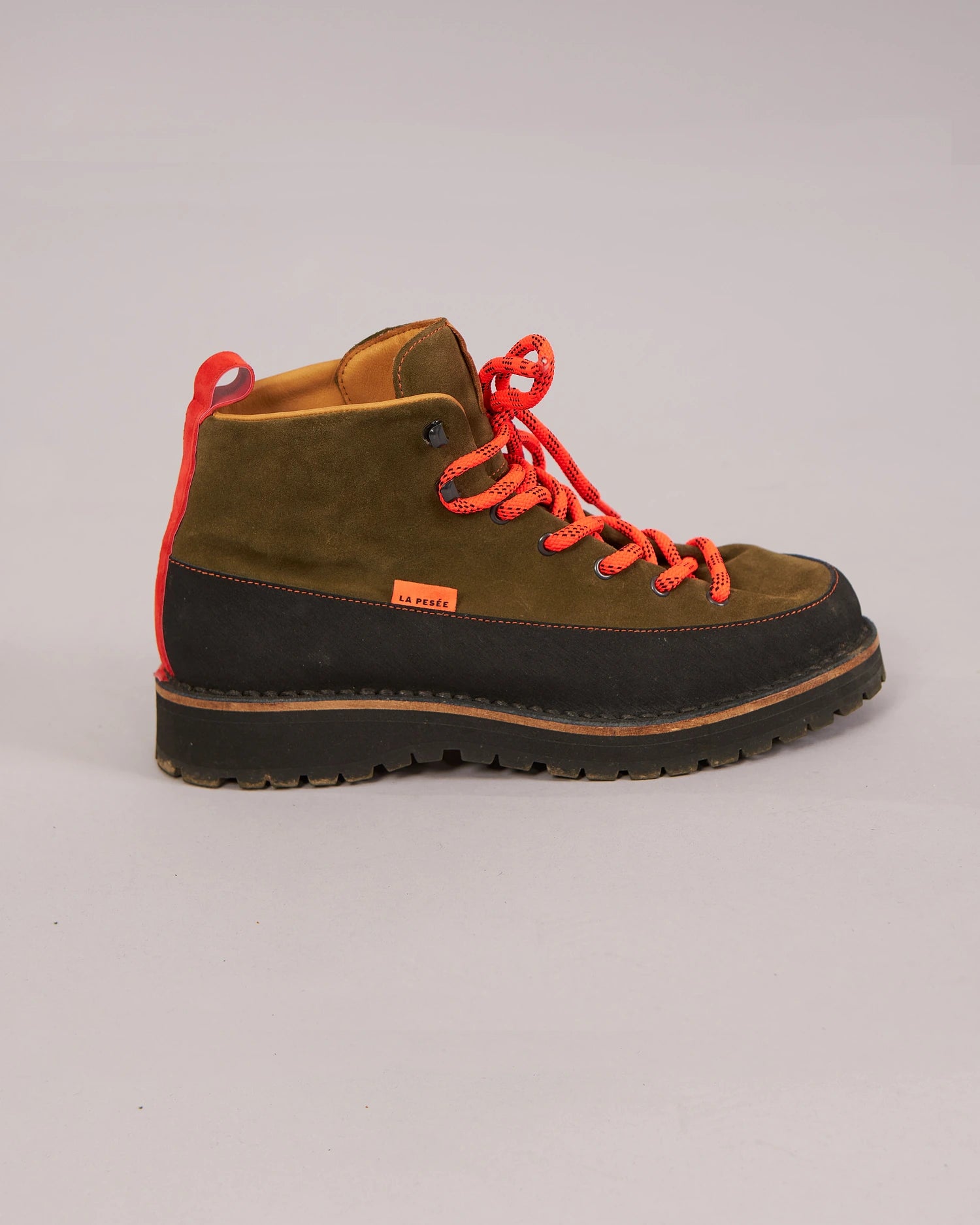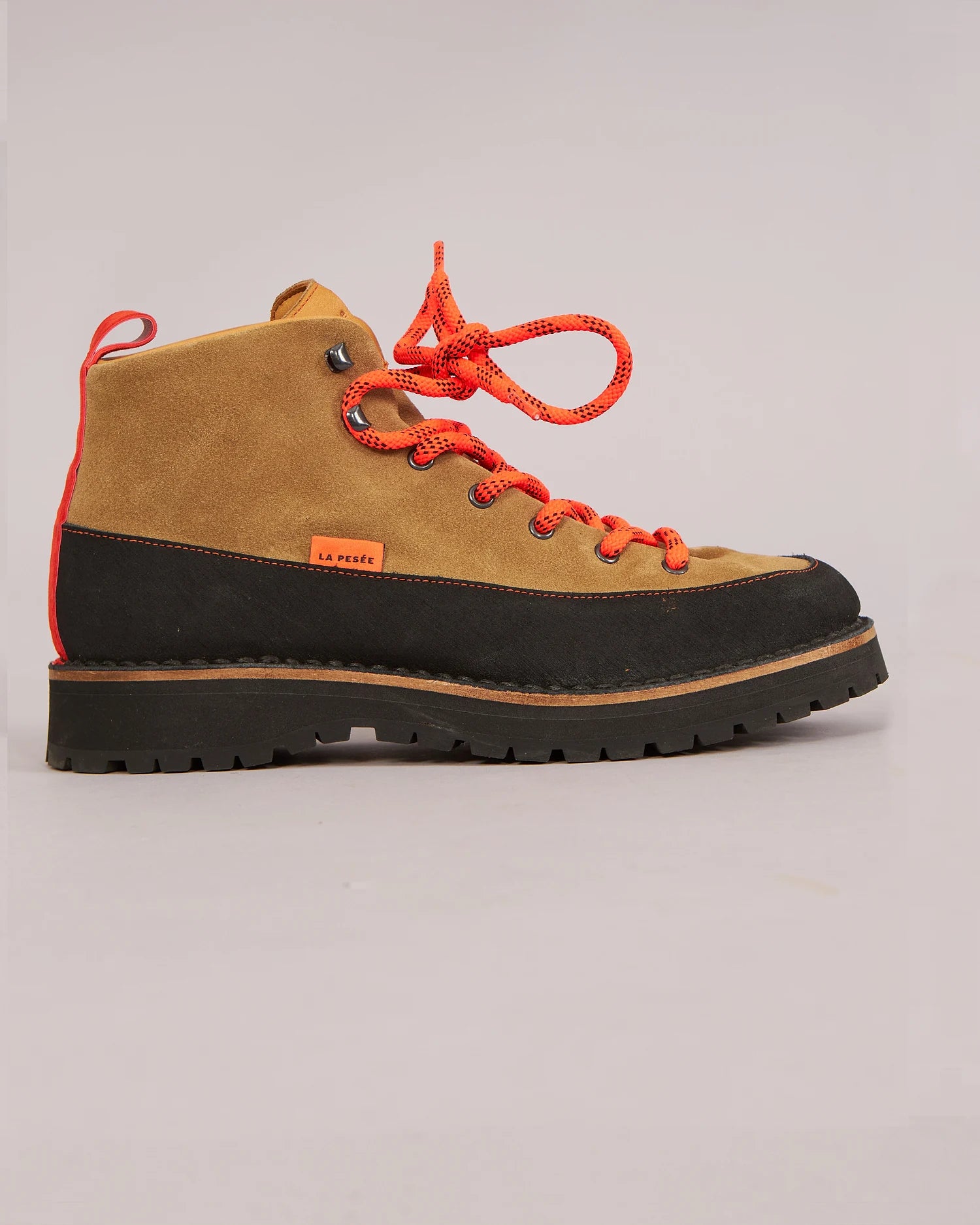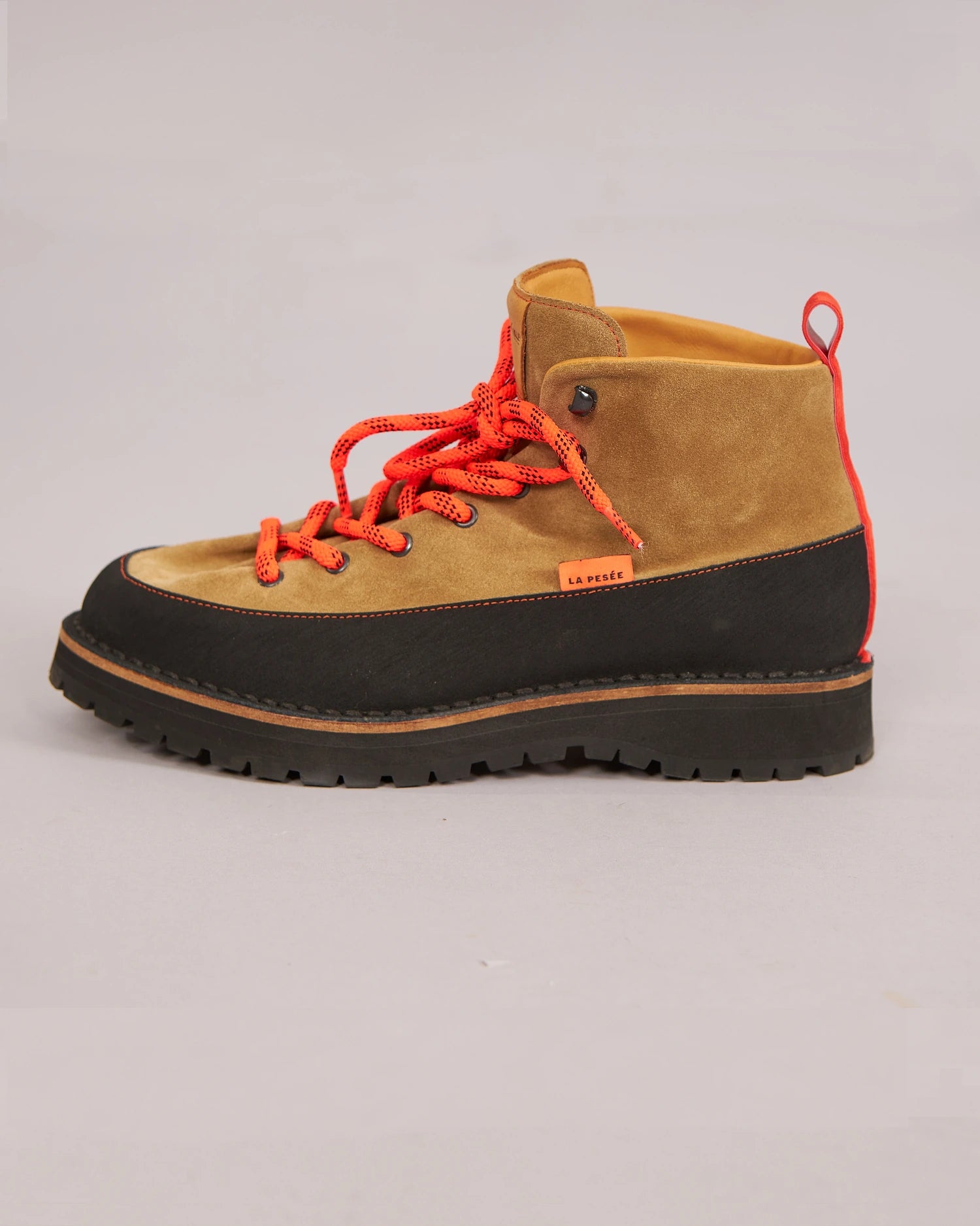 Née de la rencontre entre La Pesée et l’artisanat italien de Tre Cime, cette chaussure de montagne incarne robustesse et authenticité. Sa construction solide et ses détails distinctifs en font une pièce de caractère, pensée pour durer et accompagner chaque ascension.