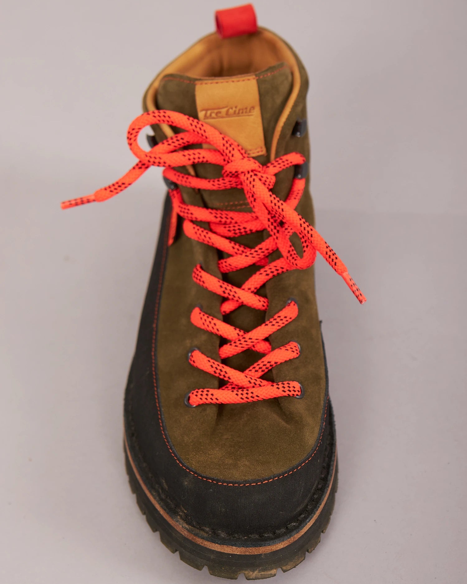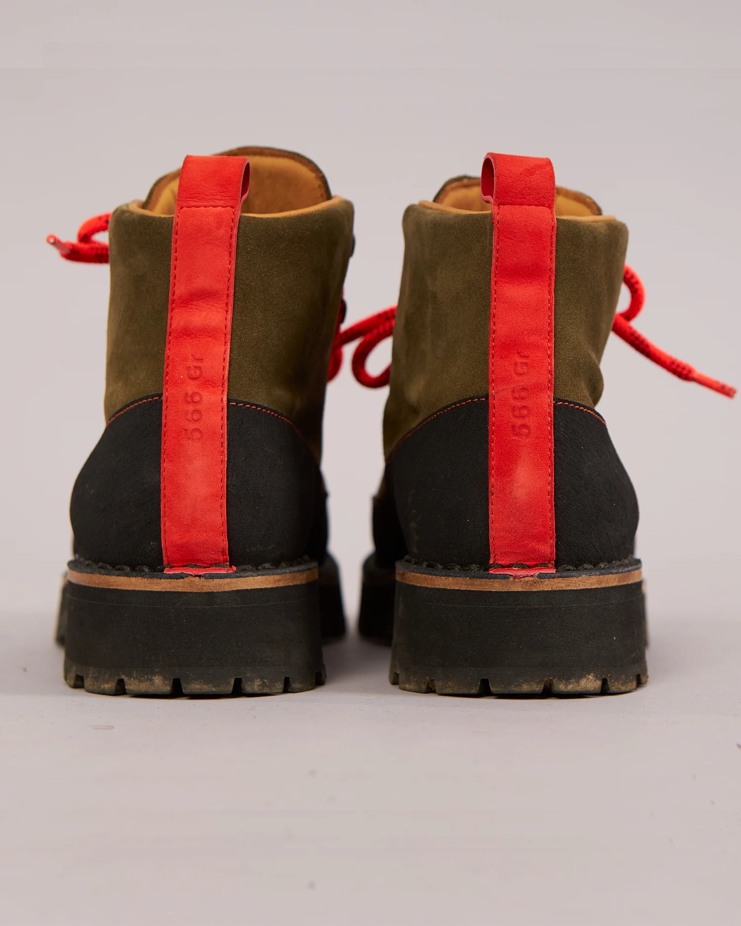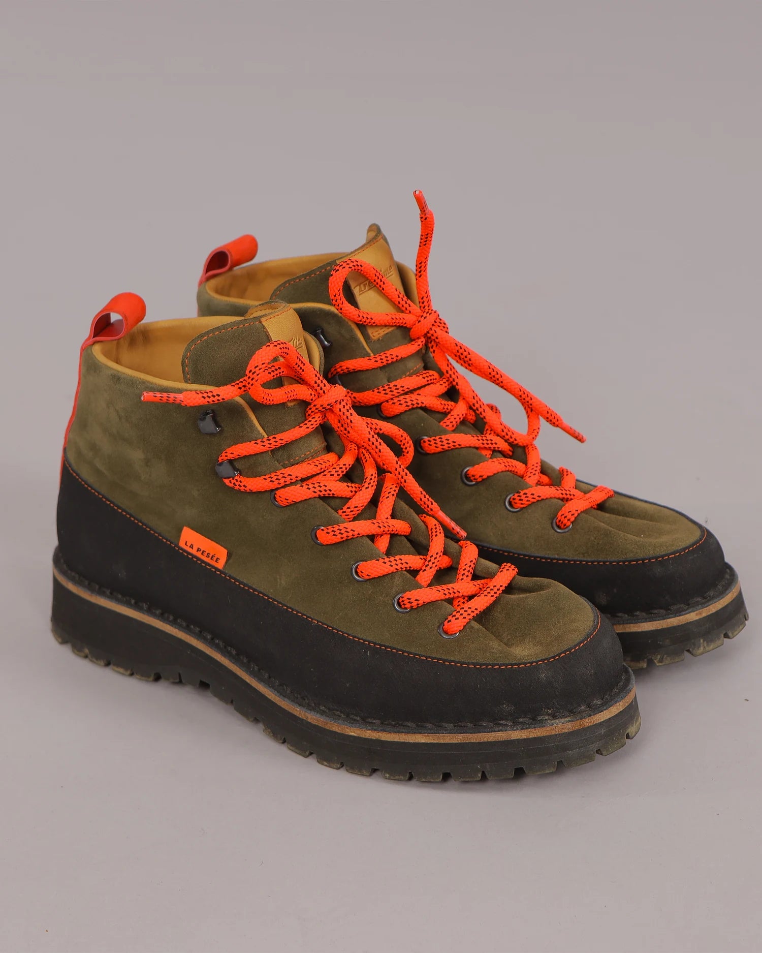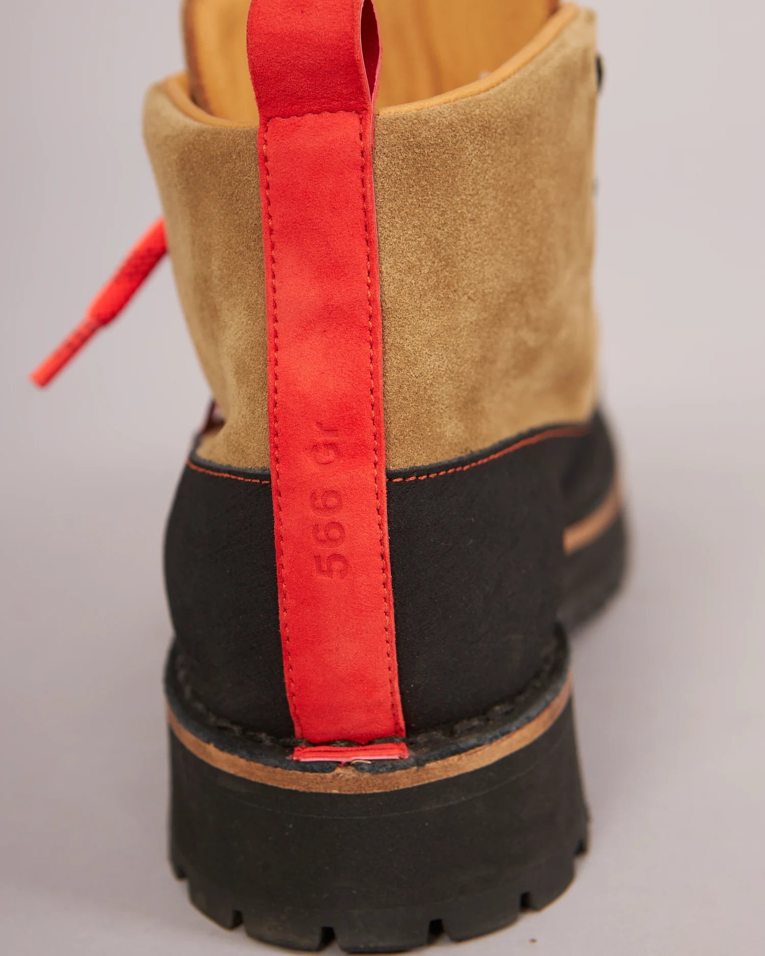 Née de la rencontre entre La Pesée et l’artisanat italien de Tre Cime, cette chaussure de montagne incarne robustesse et authenticité. Sa construction solide et ses détails distinctifs en font une pièce de caractère, pensée pour durer et accompagner chaque ascension.