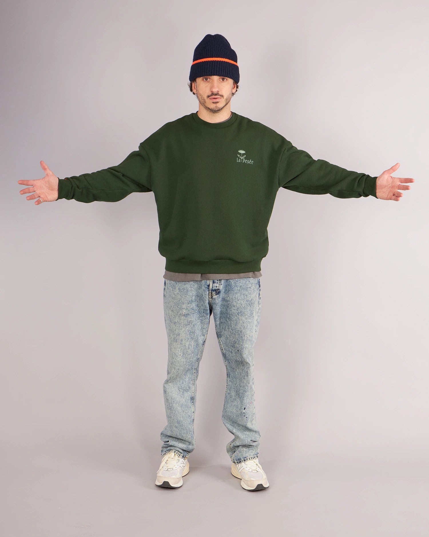 Son volume boxy structure la silhouette sans la contraindre. Un sweat qui s’impose sans en rajouter.