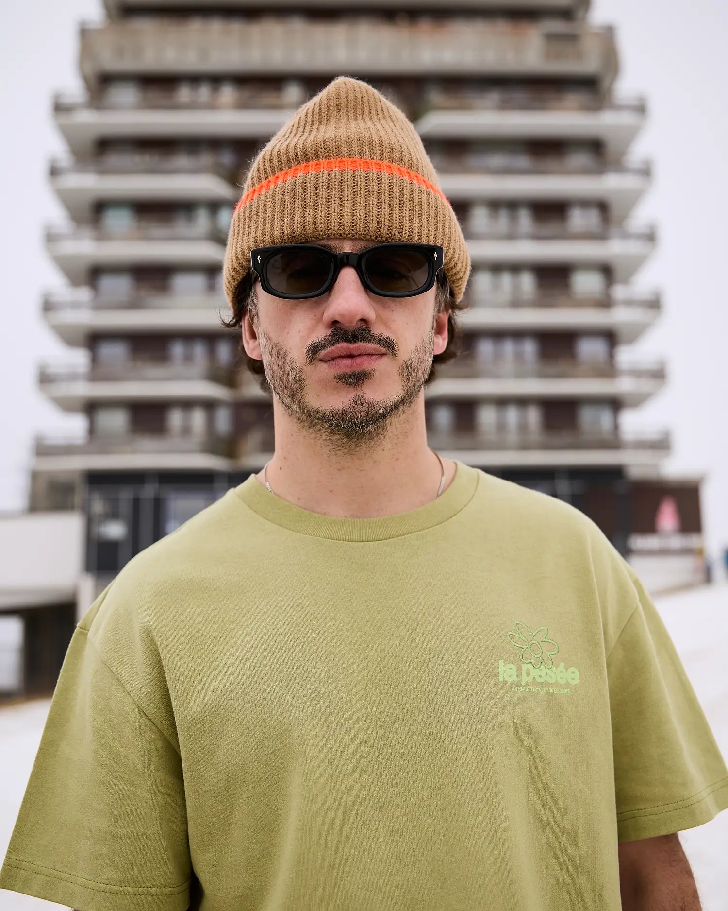 Le tee-shirt Fleur W met en avant la fleur de montagne comme un symbole essentiel de La Pesée. Sobre à l’avant avec une broderie côté cœur, il affiche dans le dos un marquage simple : une grande fleur stylisée, directe et reconnaissable. Portée par sa teinte sauge clair, une couleur peu répandue, cette pièce gagne en singularité et affirme son caractère unique.